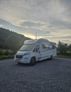 Verder is de camper uitgerust met een airco in de living en een fietsendrager achterop geschikt voor 2 ( electrische ) fietsen.